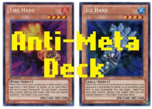Izaberite deck koji može izdrzati u anti-meta uslovima, da možete igrati karte kao što su Pot of Duality ili pak Demise, kao i deck koji može se koristiti uz gomilu traps i anti-meta karti. Zasigurno ako će te igrati anti-metu nikad nemojte izabrati otk deck kao što je bio Nekroz, jer u njemu kad bi ste igrali karte kao što su Thunder King ubili bi sami sebe. Trebali bi ste izabrati control deck kao što je shaddoll koji ima odlične fusion monster poput Winde koje stopaju BA igrače za 1 turn ili pak Anoyatilis koji je ubojit protiv svakog ritual deck kao i karti kao što su Soul Charge, ili pak uzeti Barrier Statue koje spriječavaju special summon. Shaddoll kao anti-meta iako ima special summon? To vas sigurno čudi, no shaddolls veoma rijetko special summon pogotovo otkako je Contruct otisao kao i El Shaddoll Fusion otišli na Forbidden i Limited listu, a deck ima veoma dobar control, kao i ako igrate Demise u end discardujete ih i dobijate effect od svakog discard osim Falcoa.
