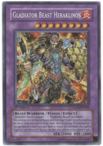 Tu sam kartu uzeo zato što me spašavala od močnih spellova i trapova na turniru. Na primjer:Dark Hole, Heavy storm, Mirror Force, BTH itd. Zanimljivo je i to što ne treba Polymerization da ju prizoveš, već vratiš u deck fusion materijale. On dolazi iz močnog Gladiator Beast decka. Dobar je protiv Vylon decka (Equip spell karte), Exodia OTK deck (puno spellova za vući), Burn (Trapovi i spellovi). Što se tiče napada koji je 3000 je odličan “duo” sa ovakvim efektom. Dobar je combo s D-Hero plazma (Po mom mišljenju) jer plazma negira effecte protivnikovih karata, a Heraklinos spellove i trapove. Za njega treba i karte koje omogučuju “debel” hand npr. Maxx “c”. Za njegov art mogu reći svašta: Čaroban, pun “maštovit”, sjajna slika. Ma sve dobro mogu reći za art. Ja ga volim igrati u svom Gladiator Beast decku jer mu uvijek pomogne zbog napada i efekta. Sad ću napisati prednosti i slabosti te karte: